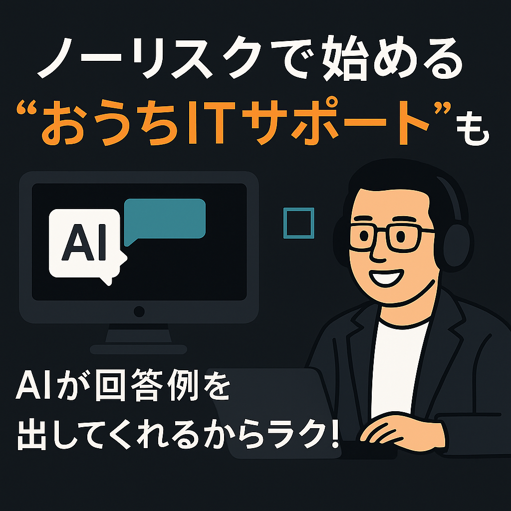 そんな僕がいま力を入れているのが、オンライン完結の “おうち IT サポート” 副業 です。チャットやメールだけで依頼を受け、AI(ChatGPT)に下書きを作ってもらうから、対面ゼロでもスムーズにこなせています。